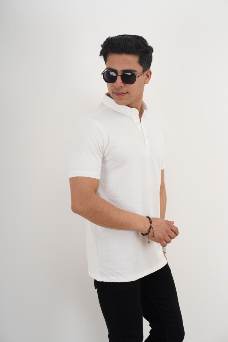 BEYAZ İNCE FİTİLLİ POLO YAKA TRİKO