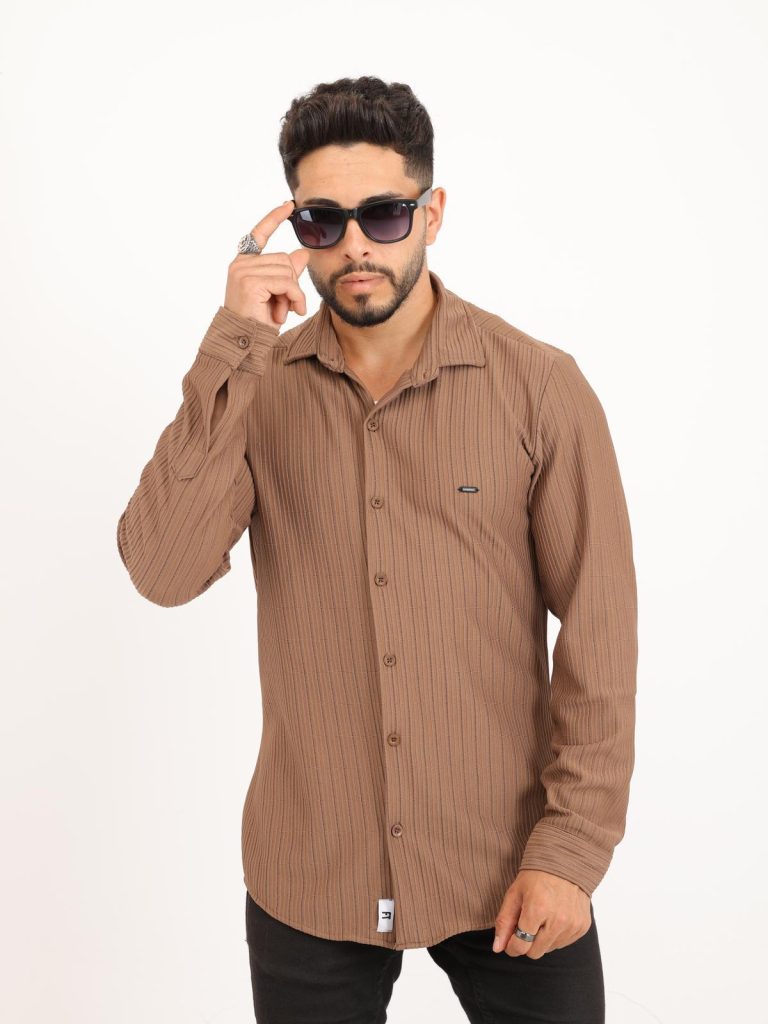 ERKEK ÇİZGİLİ KAHVERENGİ GÖMLEK