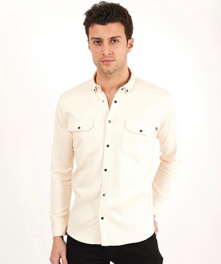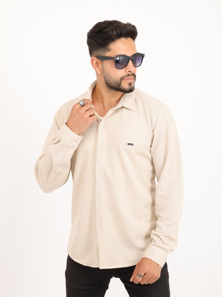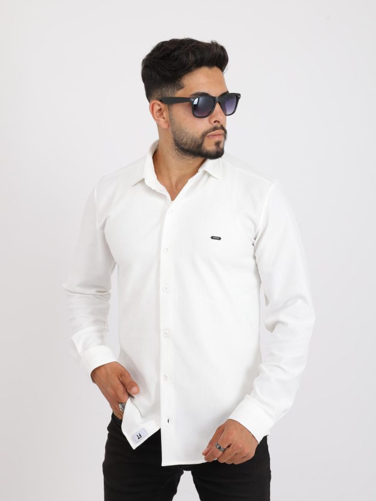BEYAZ İNCE FİTİLLİ ÖRGÜ GÖMLEK