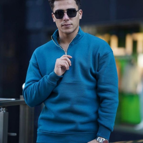 AÇIK MAVİ ÜÇ İPLİK ŞARDONLU YARIM FERMUARLI