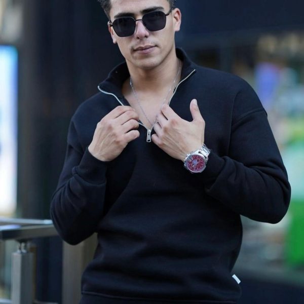 SİYAH ÜÇ İPLİK ŞARDONLU YARIM FERMUARLI