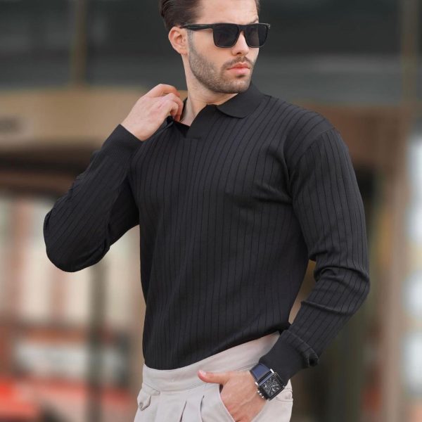 SİYAH İNCE FİTİLLİ POLO YAKA TRİKO