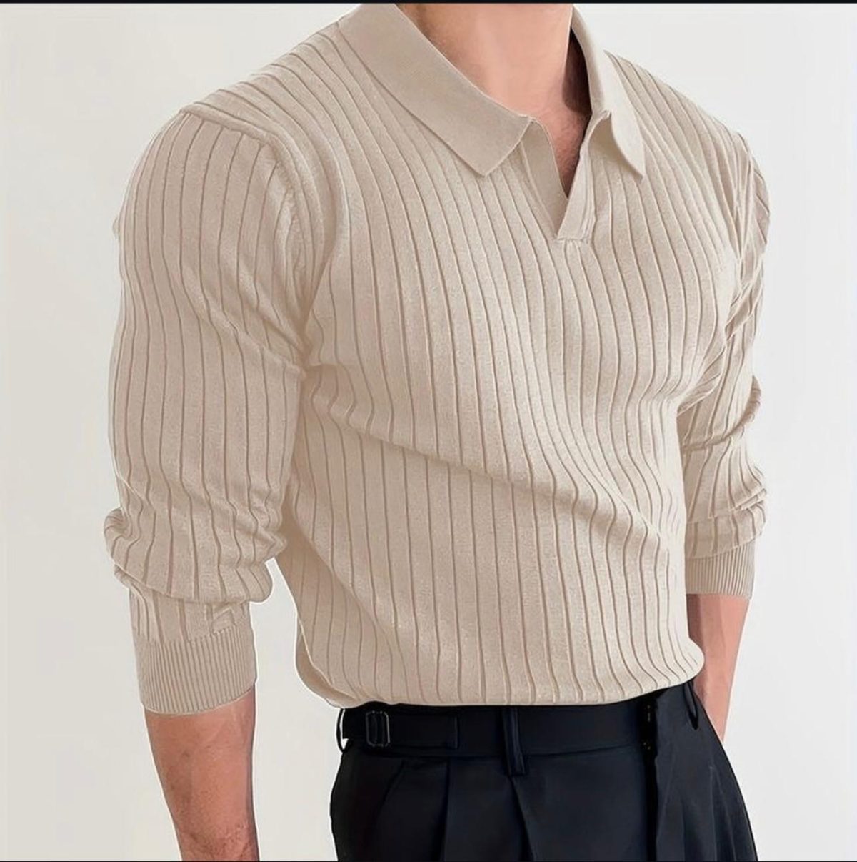 BEJ İNCE FİTİLLİ POLO YAKA TRİKO