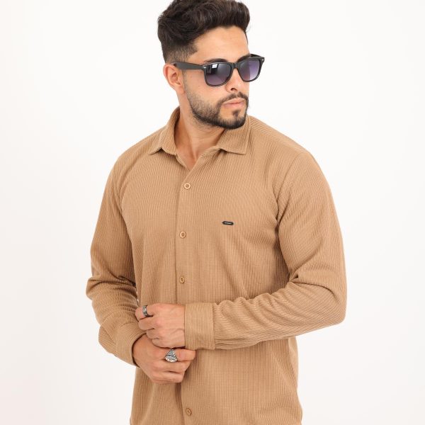 KAHVERENGİ İNCE FİTİLLİ ÖRGÜ GÖMLEK
