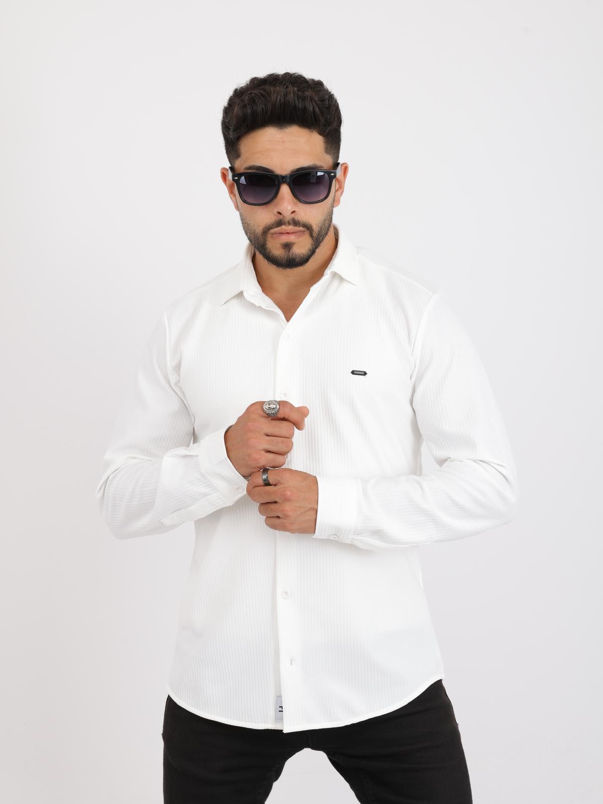 BEYAZ İNCE FİTİLLİ ÖRGÜ GÖMLEK