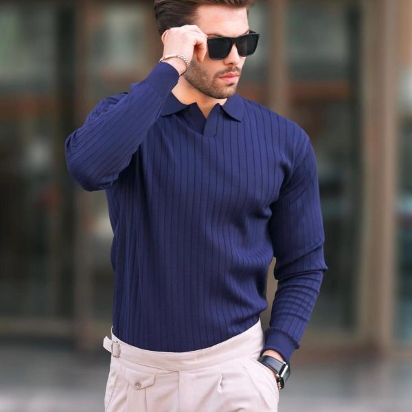 MAVİ İNCE FİTİLLİ POLO YAKA TRİKO