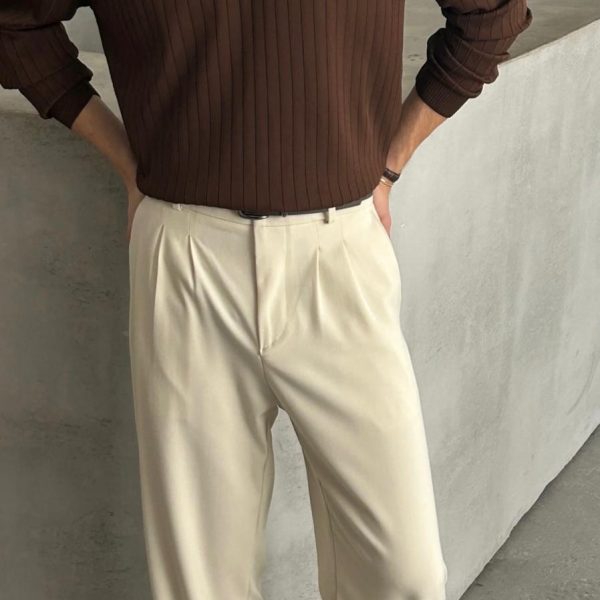 KAHVERENGİ İNCE FİTİLLİ POLO YAKA TRİKO