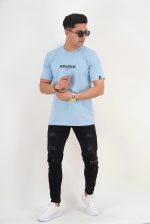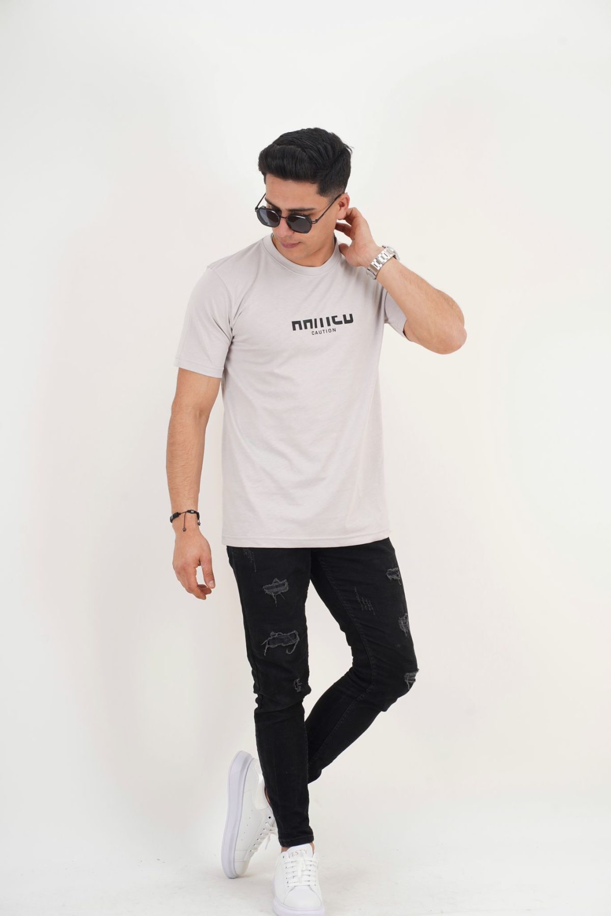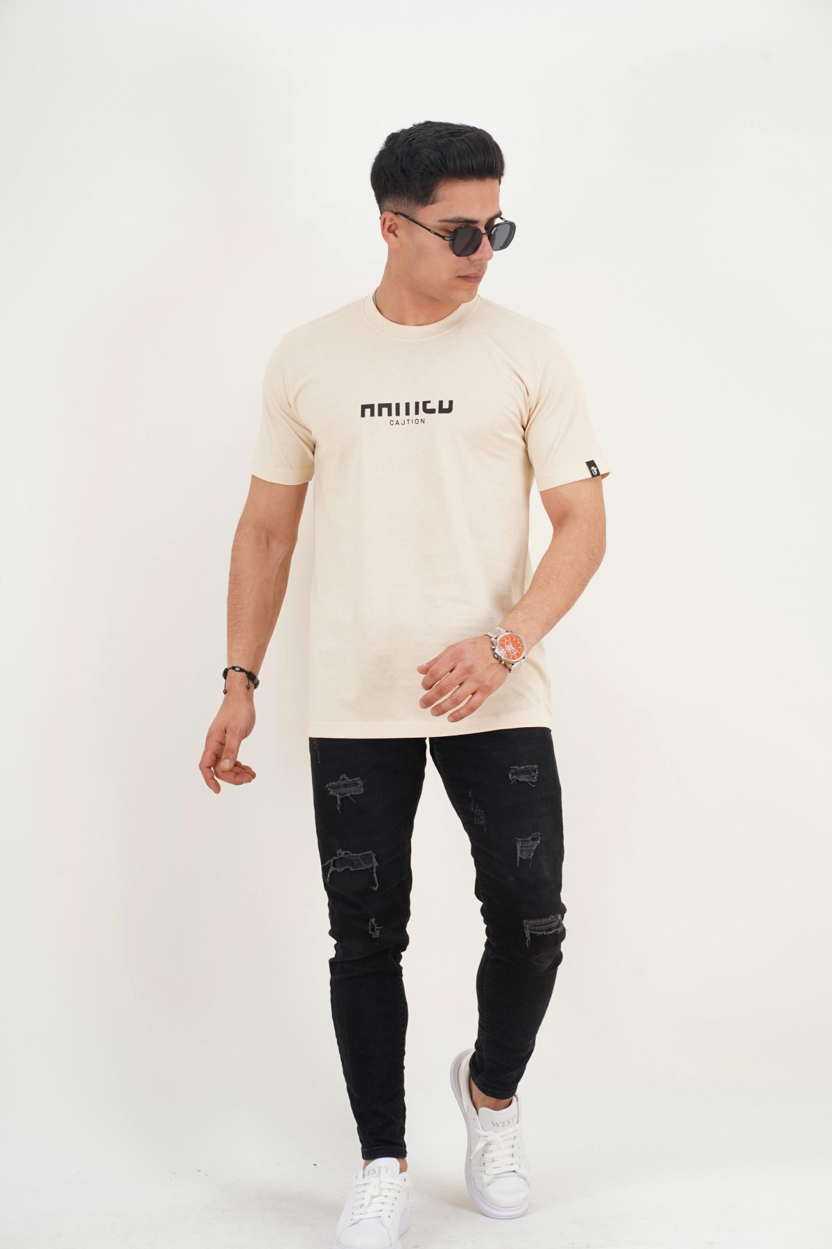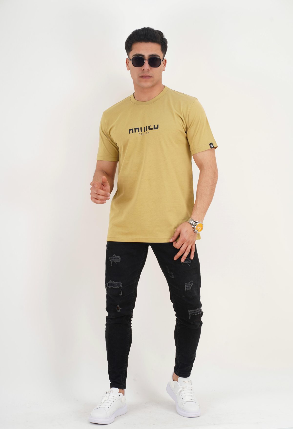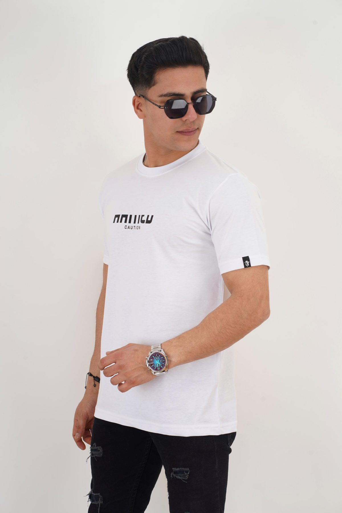 BİSİKLET YAKA RENKLİ BASKILI TİŞÖRT