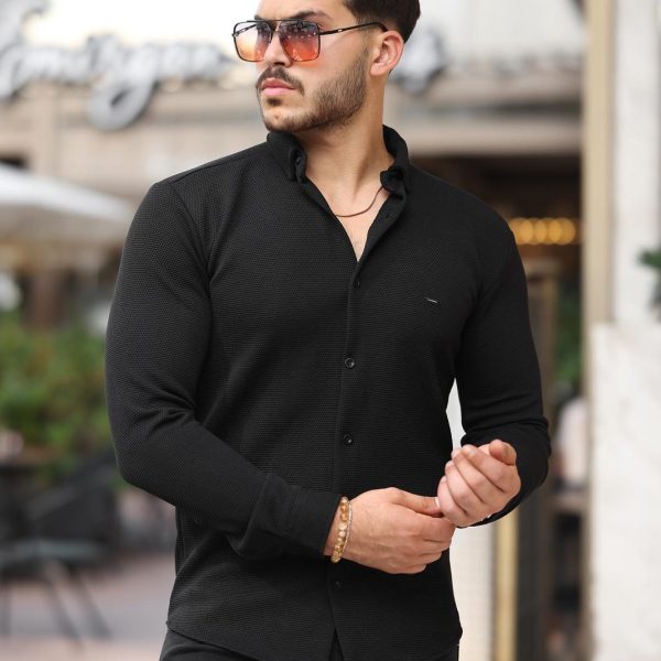 SİYAH ÖRGÜ SPOR GÖMLEK