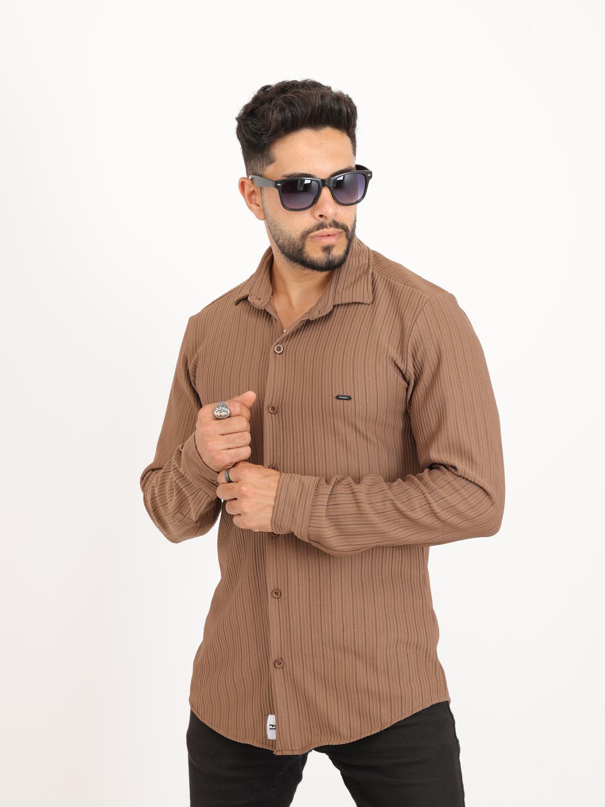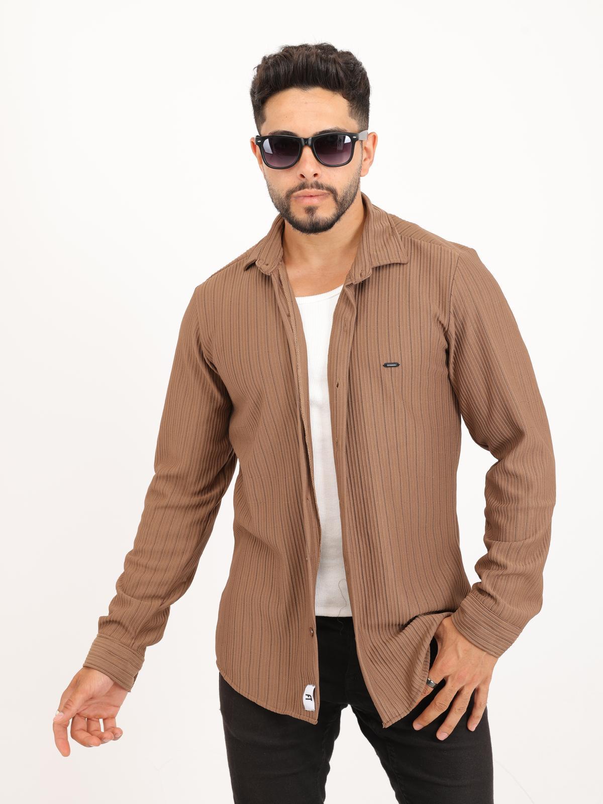 ERKEK ÇİZGİLİ KAHVERENGİ GÖMLEK
