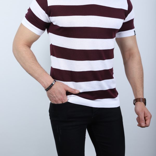 KAHVERENGİ GENİŞ ÇİZGİLİ POLO YAKA ERKEK TRİKO TİŞÖRT