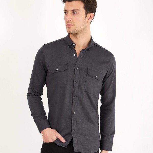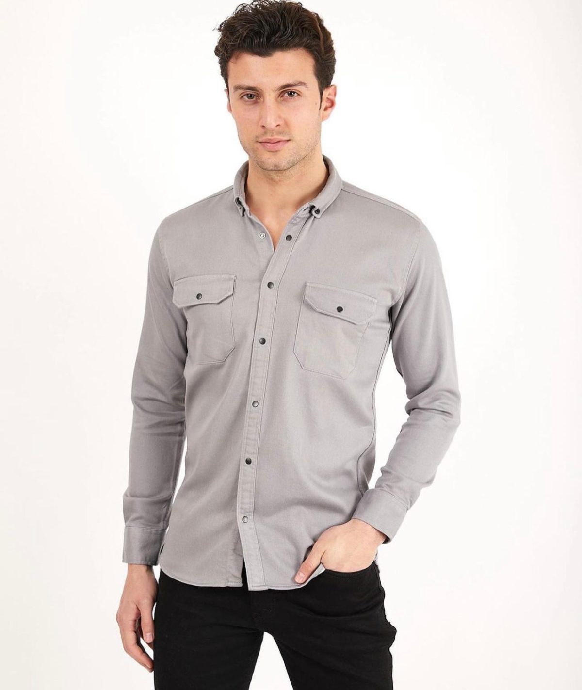 GRİ KALIN GABARDİN MEVSİMLİK GÖMLEK