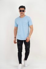 BİSİKLET YAKA RENKLİ BASKILI TİŞÖRT