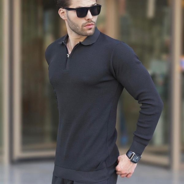 SİYAH SELANİK TRİKO KAZAK FERMUARLI