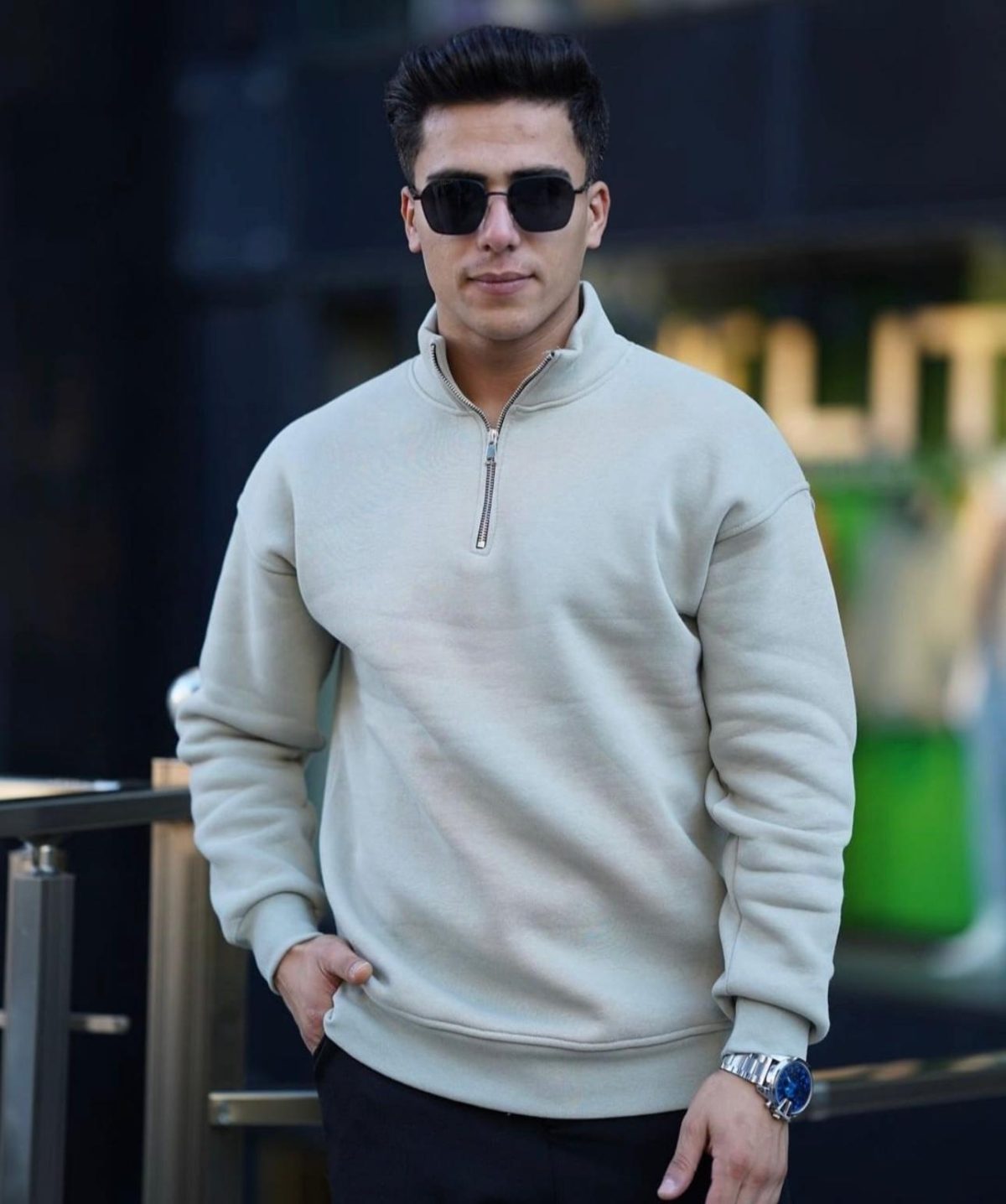 GRİ ÜÇ İPLİK ŞARDONLU YARIM FERMUARLI