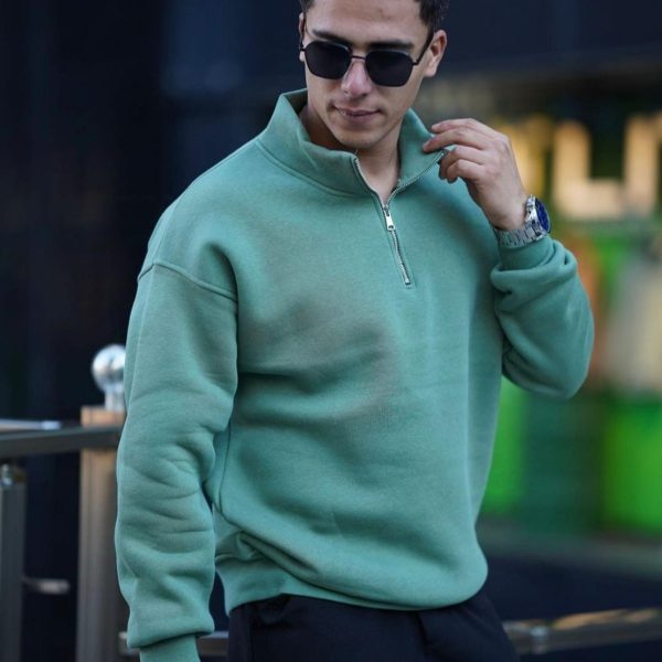 YEŞİL ÜÇ İPLİK ŞARDONLU YARIM FERMUARLI
