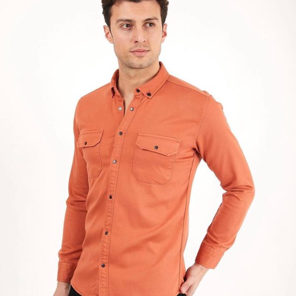 TURUNCU KALIN GABARDİN MEVSİMLİK GÖMLEK