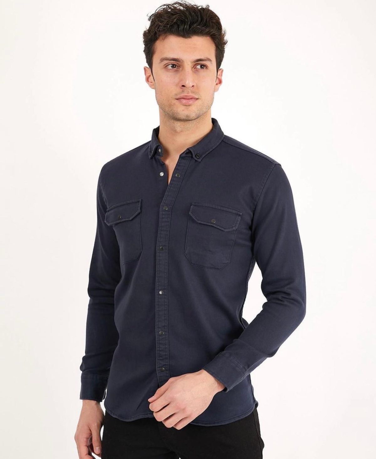 MAVİ KALIN GABARDİN MEVSİMLİK GÖMLEK