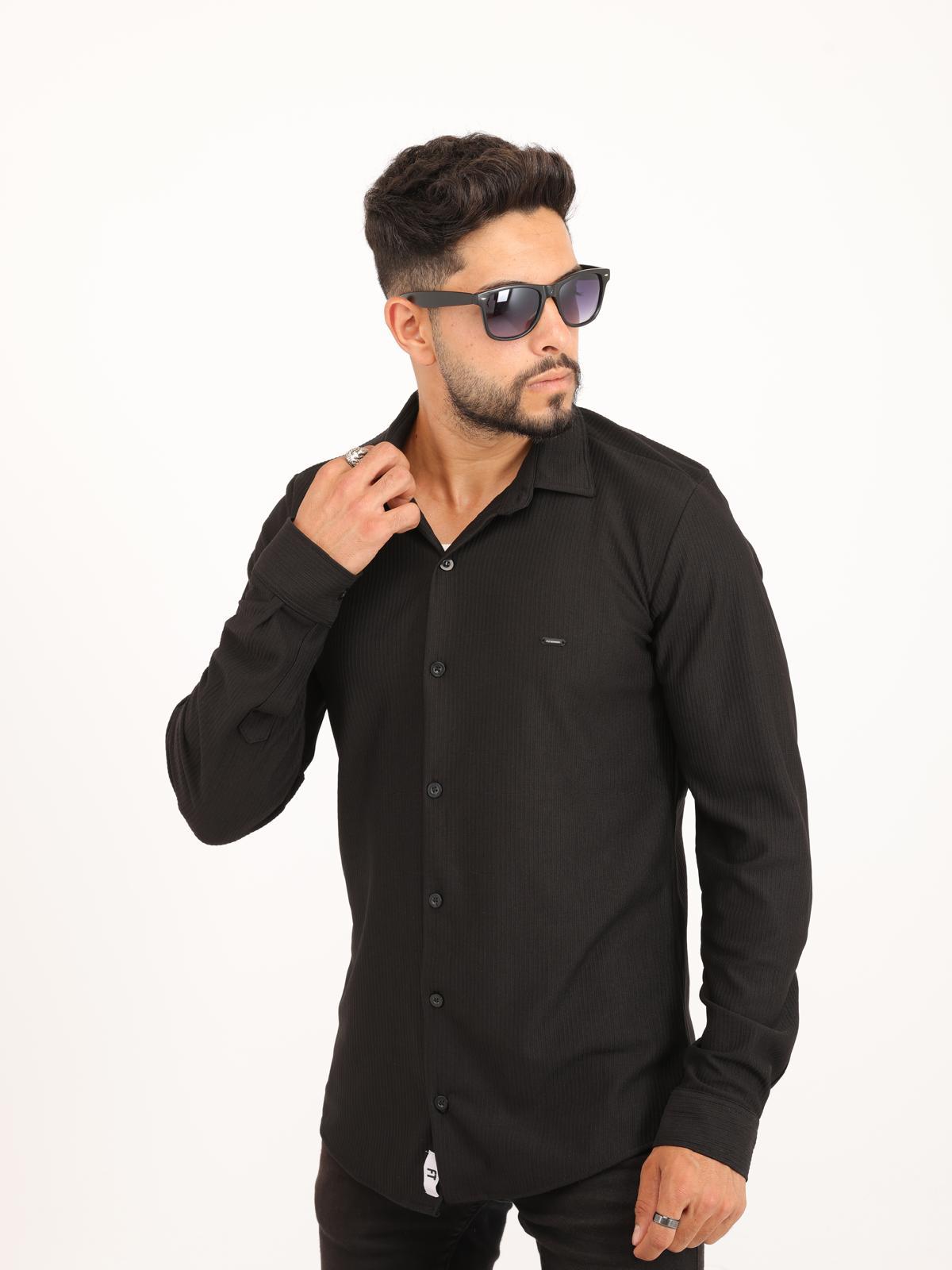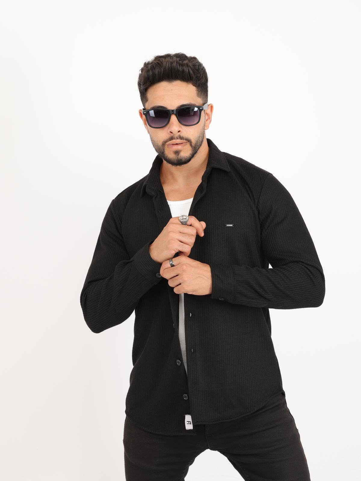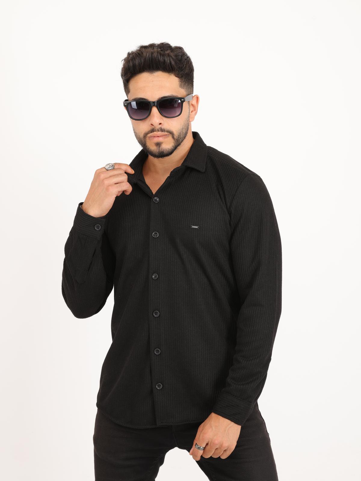 SİYAH İNCE FİTİLLİ ÖRGÜ GÖMLEK