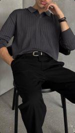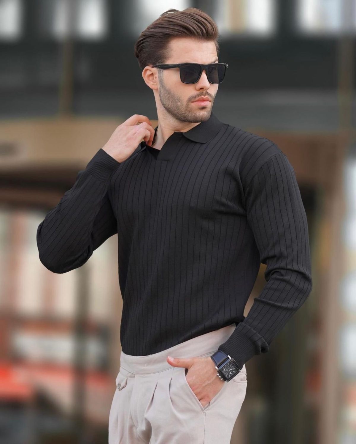 SİYAH İNCE FİTİLLİ POLO YAKA TRİKO