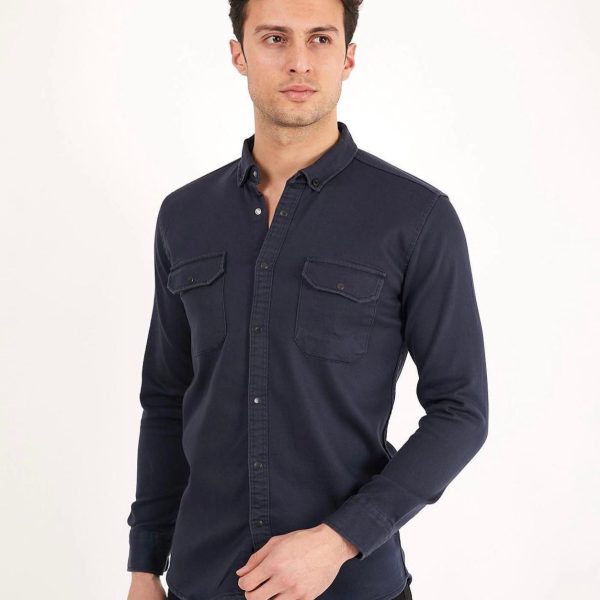 MAVİ KALIN GABARDİN MEVSİMLİK GÖMLEK