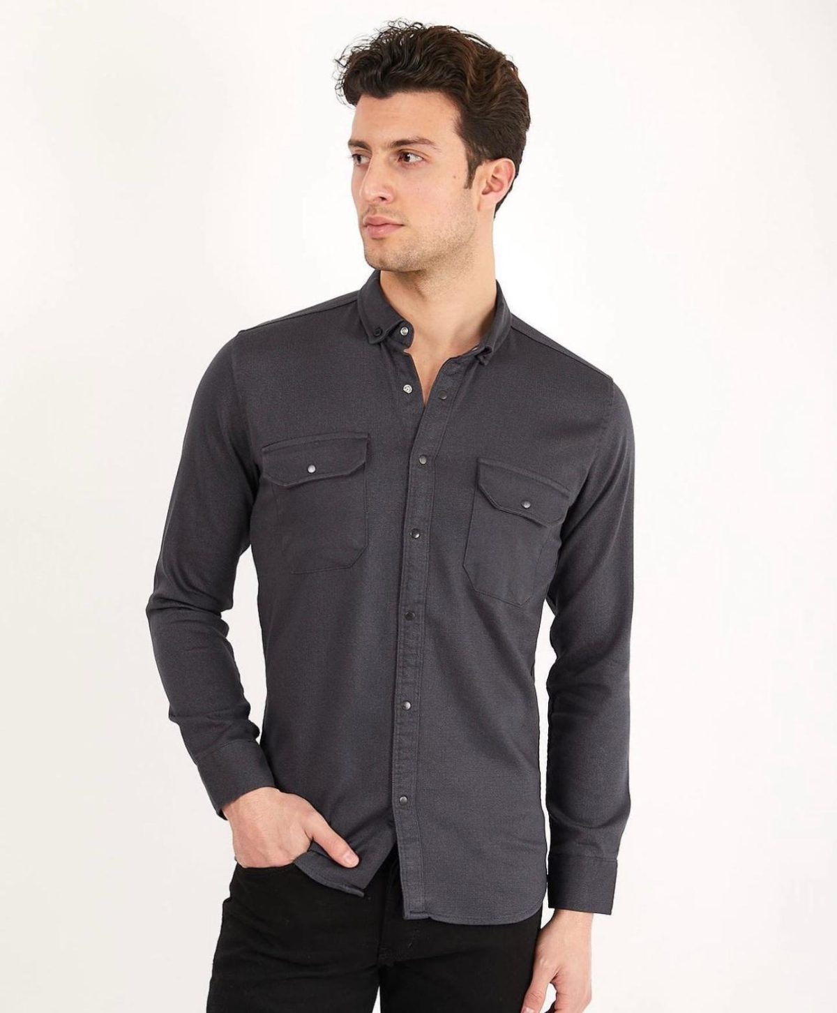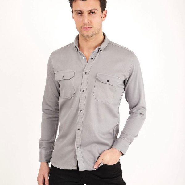 GRİ KALIN GABARDİN MEVSİMLİK GÖMLEK