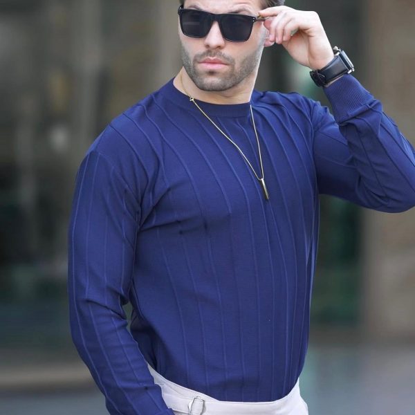 MAVİ TRİKO KAZAK FİTİLLİ SIFIR YAKA