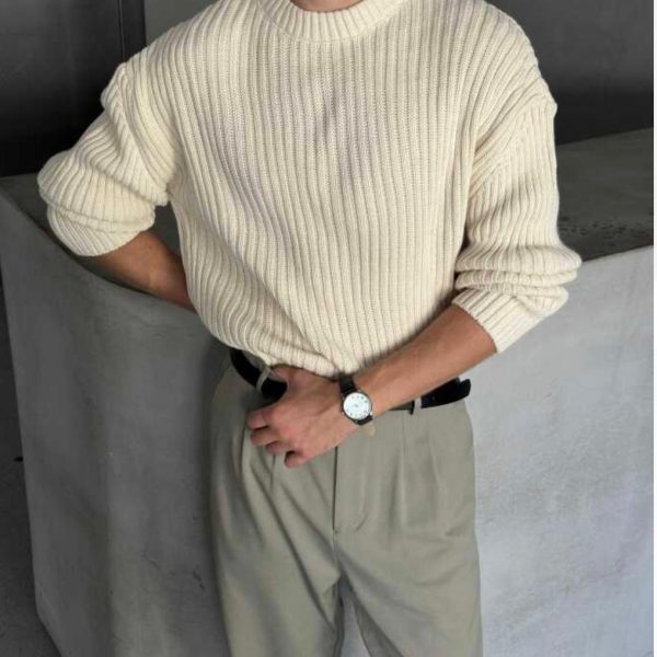 KREM KALIN ÖRGÜ TRİKO KAZAK
